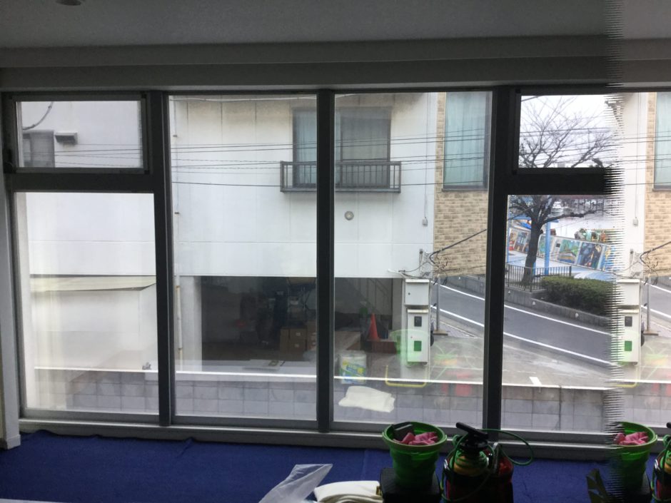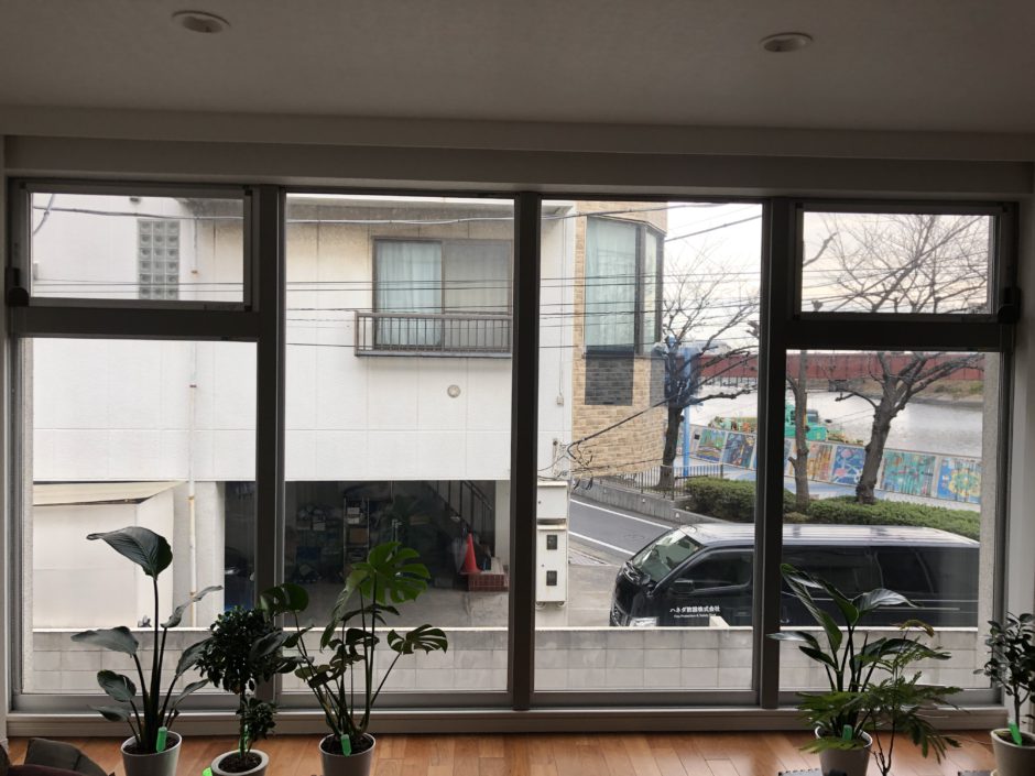 ‍施工後の内部。マジックミラータイプの目隠しフィルムなので、部屋からの場合、見た目に大きな変化はありません。