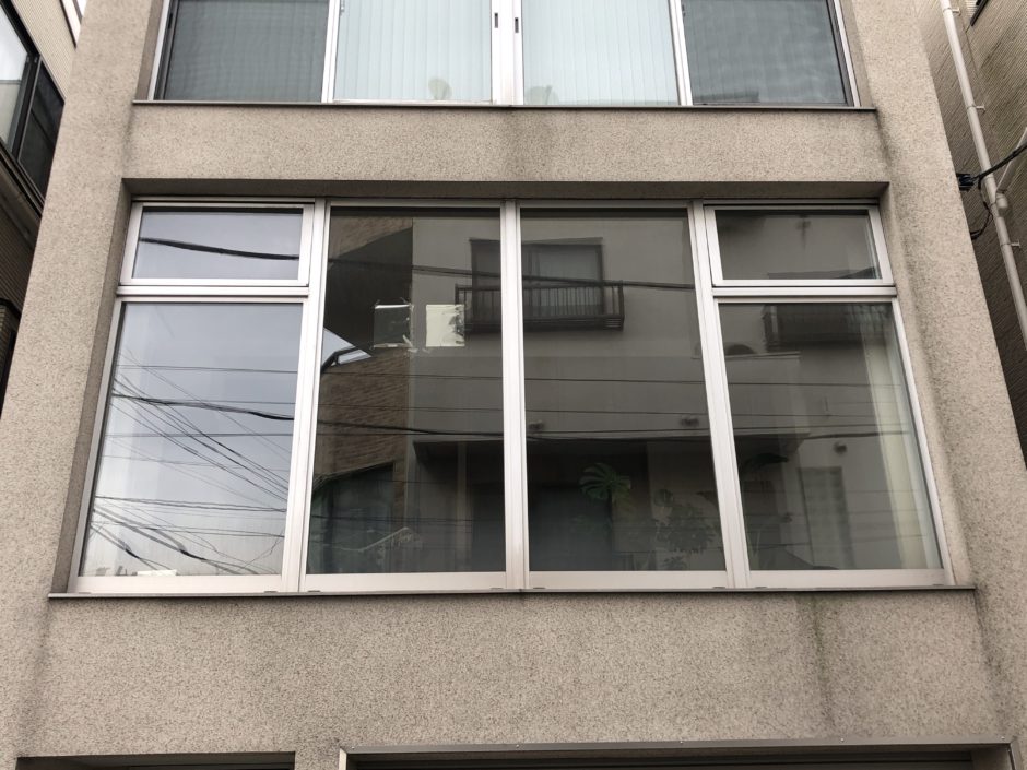 ‍施工前の外観。道路から内部が見えていますが、マジックミラータイプの目隠しフィルムを施工し、内部を見えなくしました。