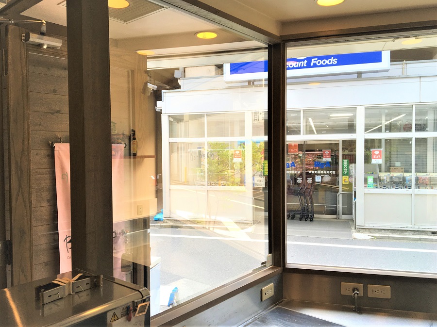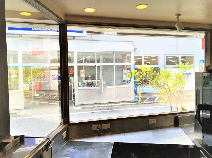 ‍店舗のウィンドウにマジックミラータイプのフィルムを貼り付け。