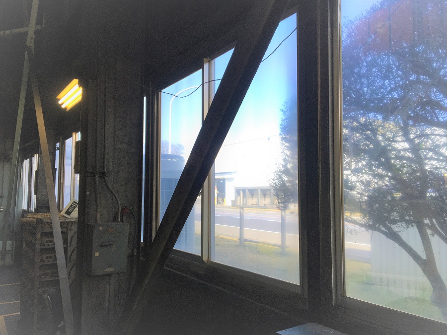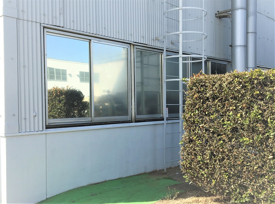 ‍施設の窓にミラータイプの目隠しフィルムを貼付け。今回使用したフィルムは、ScopeオリジナルのHF20です。