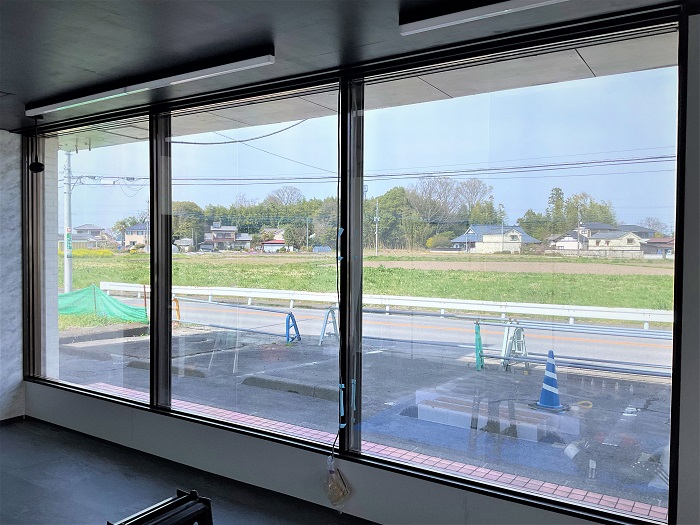 ‍施工後。日中外が明るい時はミラーのような見え方になり室内はほとんど見えません。