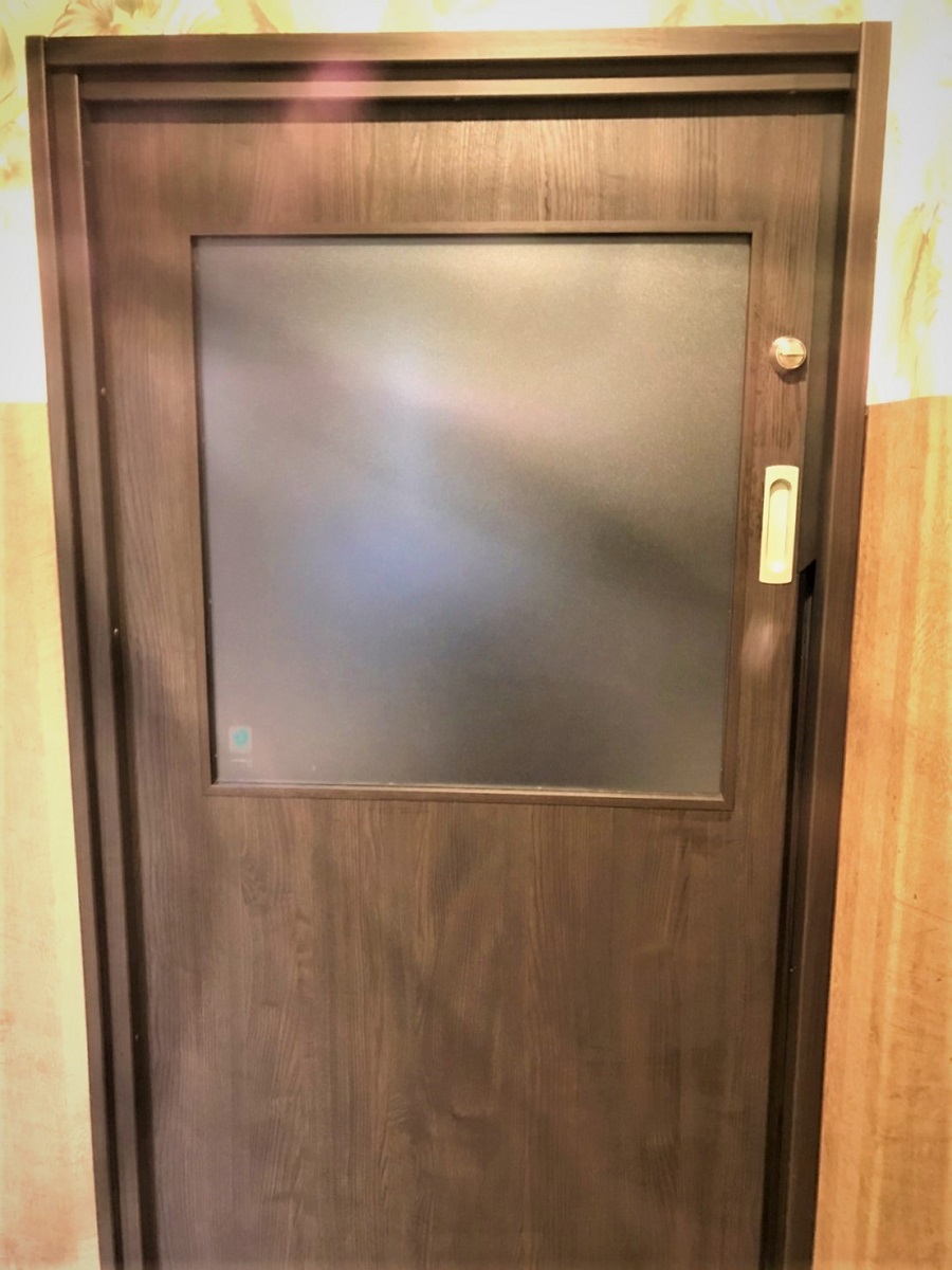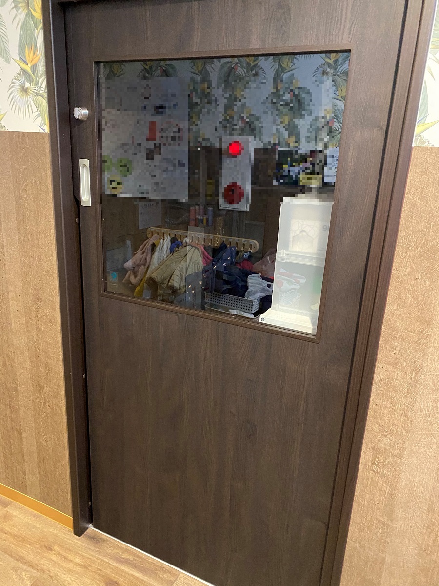 ‍保育施設の室内引き戸窓に目隠しフィルムを貼り付け。