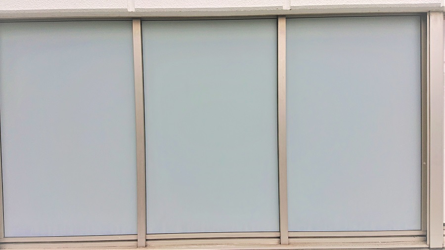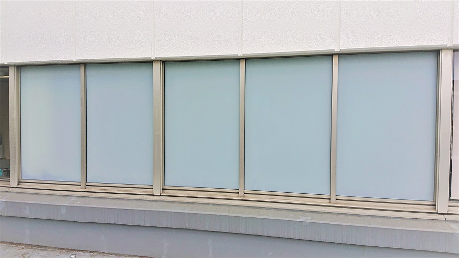 ‍研修施設の窓にスリガラスタイプの目隠しフィルムを貼付。