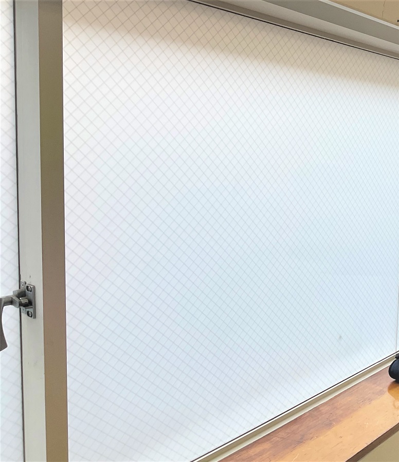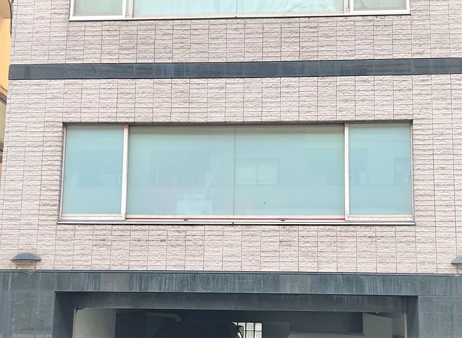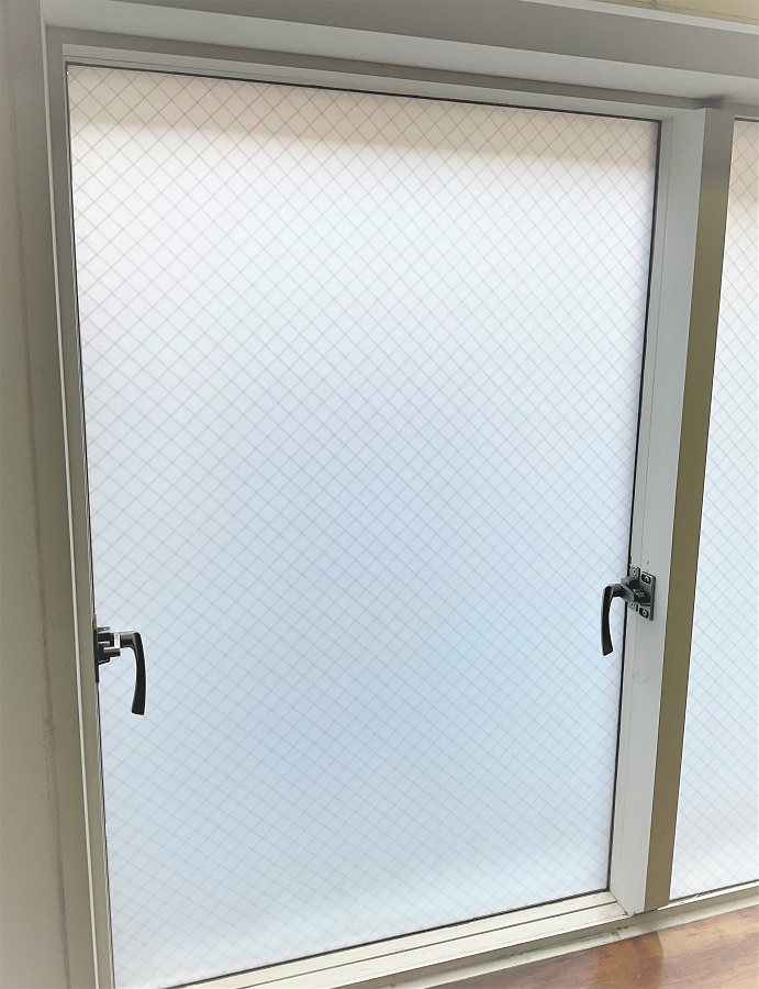 ‍オフィスの窓にスリガラスタイプの目隠しフィルムを貼付け。