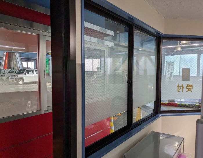 ‍窓にも同じフィルム。こちらは3M社製の『グラッセ』。