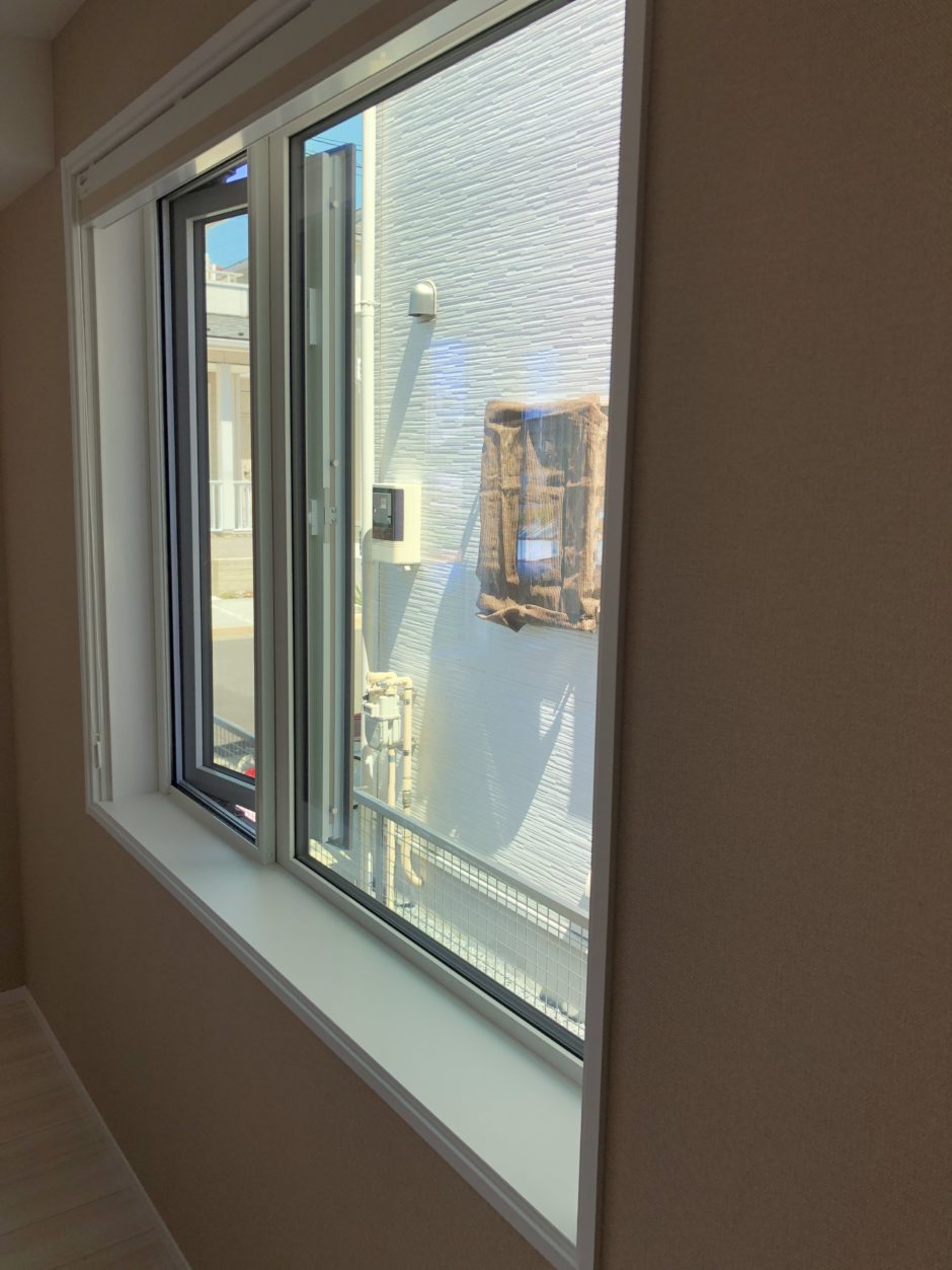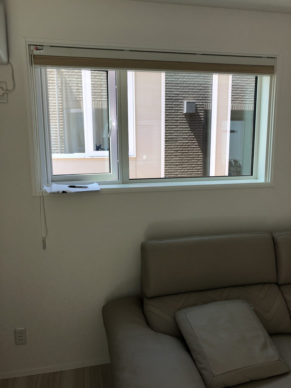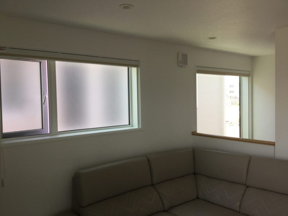 ‍隣の家の窓からの視線をカットするため、リビングルームにはスリガラスタイプを施工。
