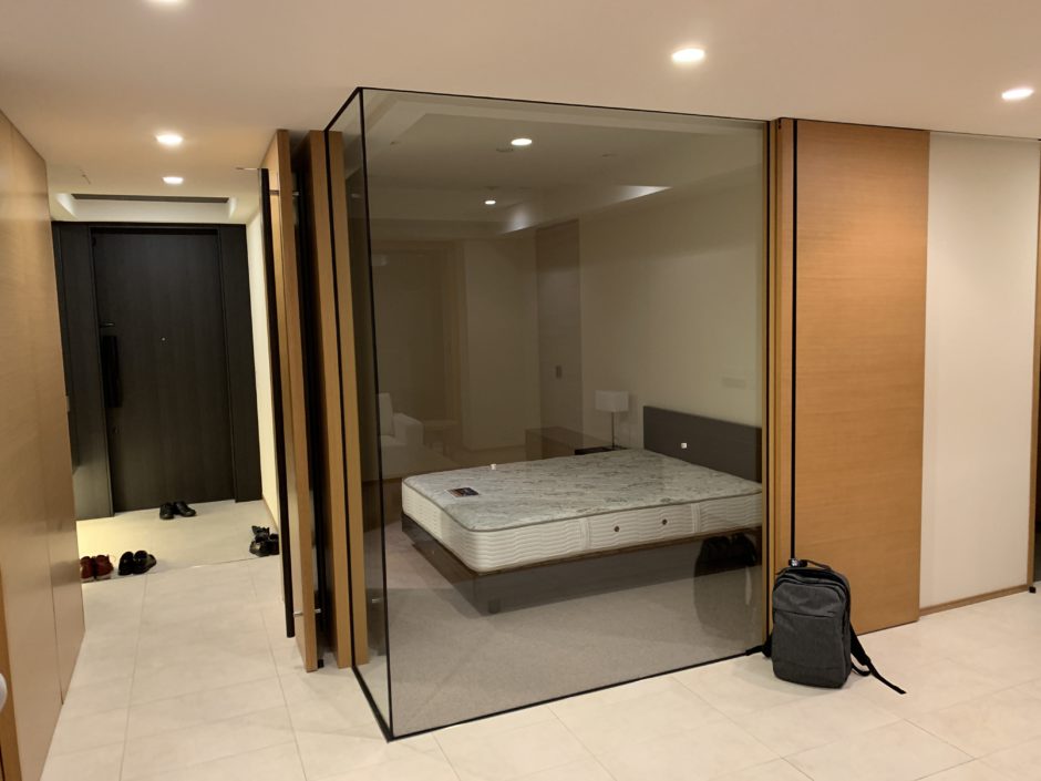 ‍施工前のベッドルームのガラス面
