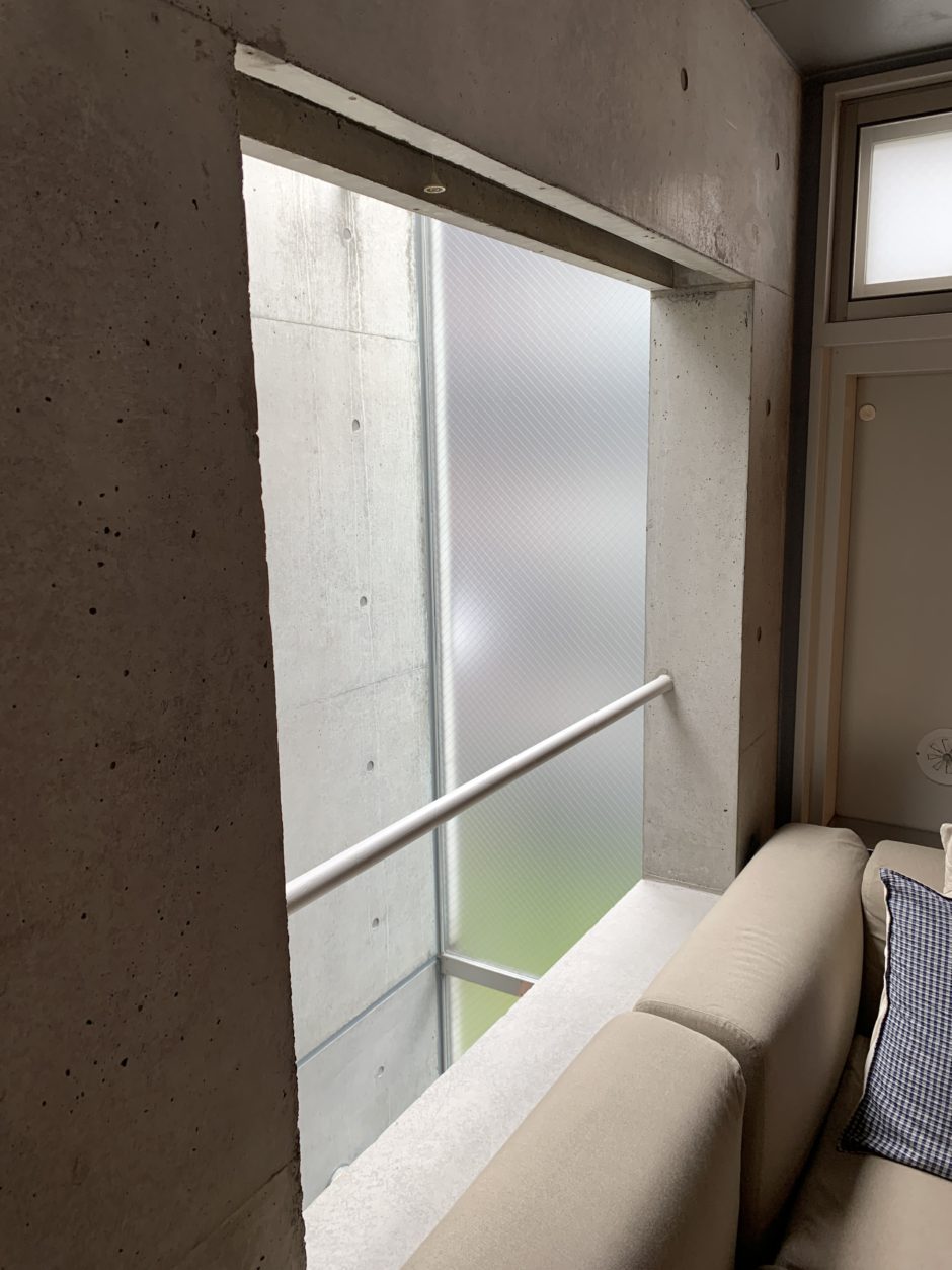 ‍施工後。2階から吹き抜け側を見た時。生活スペースも外から見えなくなりました。