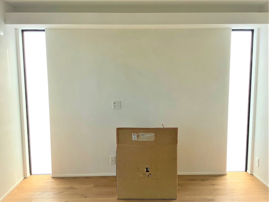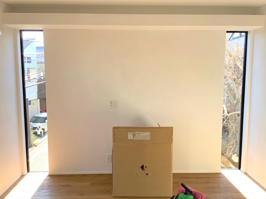‍おしゃれなデザインのはめ込み窓に目隠しフィルムを貼付。