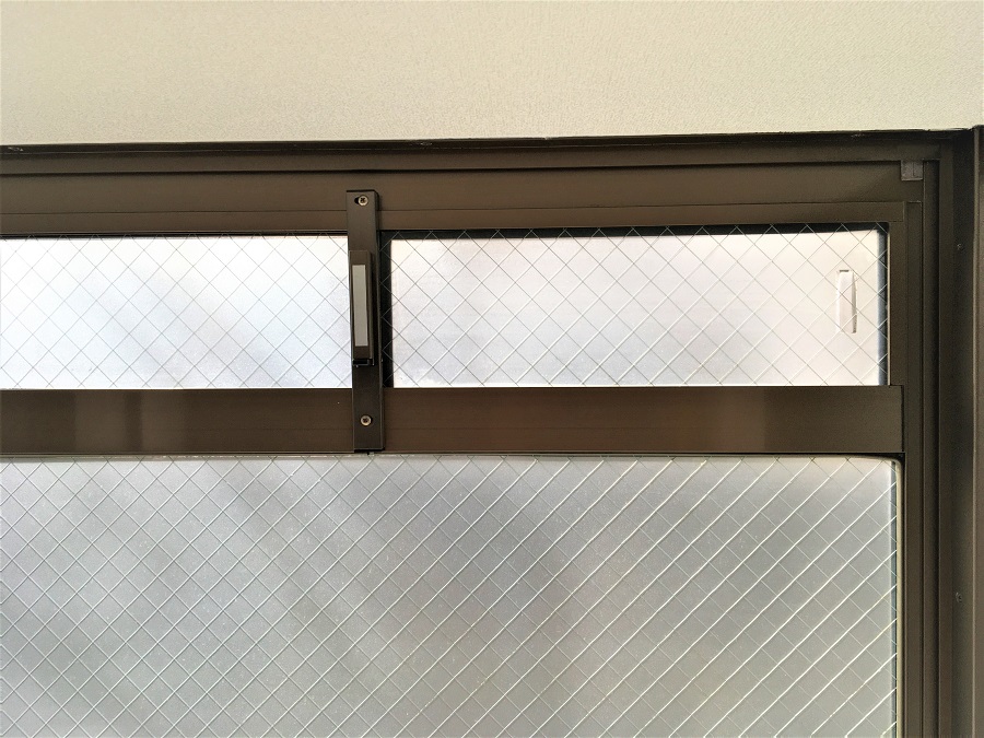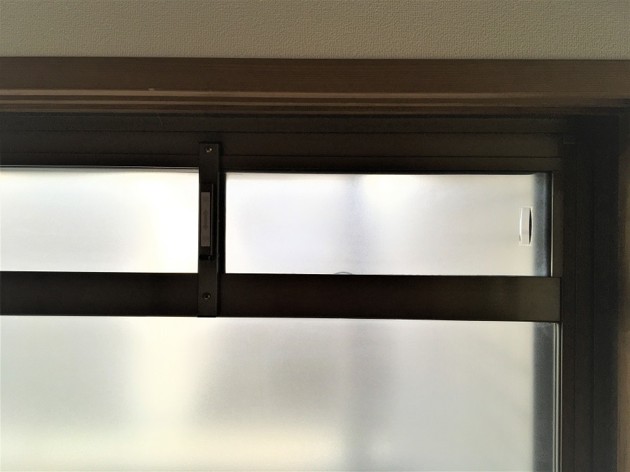 ‍居室、吐き出し窓前面に目隠しフィルムを貼り付け。