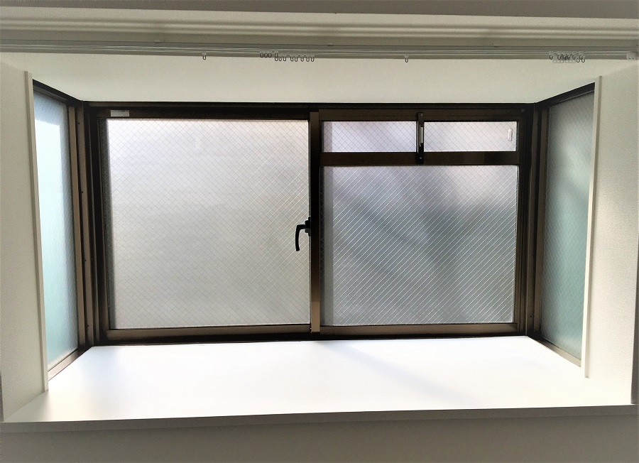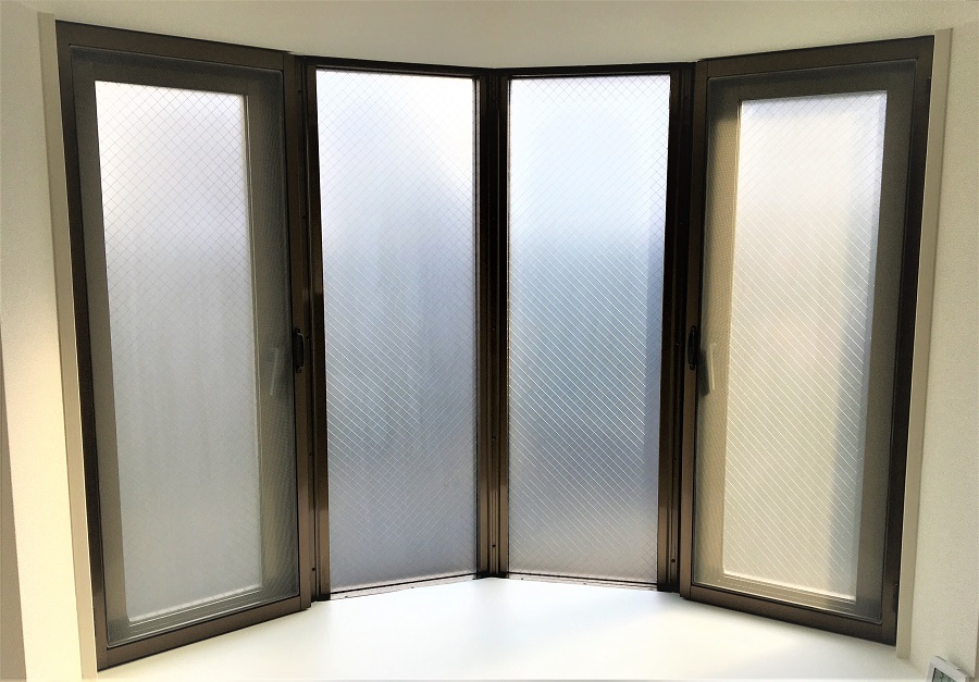 ‍出窓にも同じ目隠しフィルムを貼り付け。