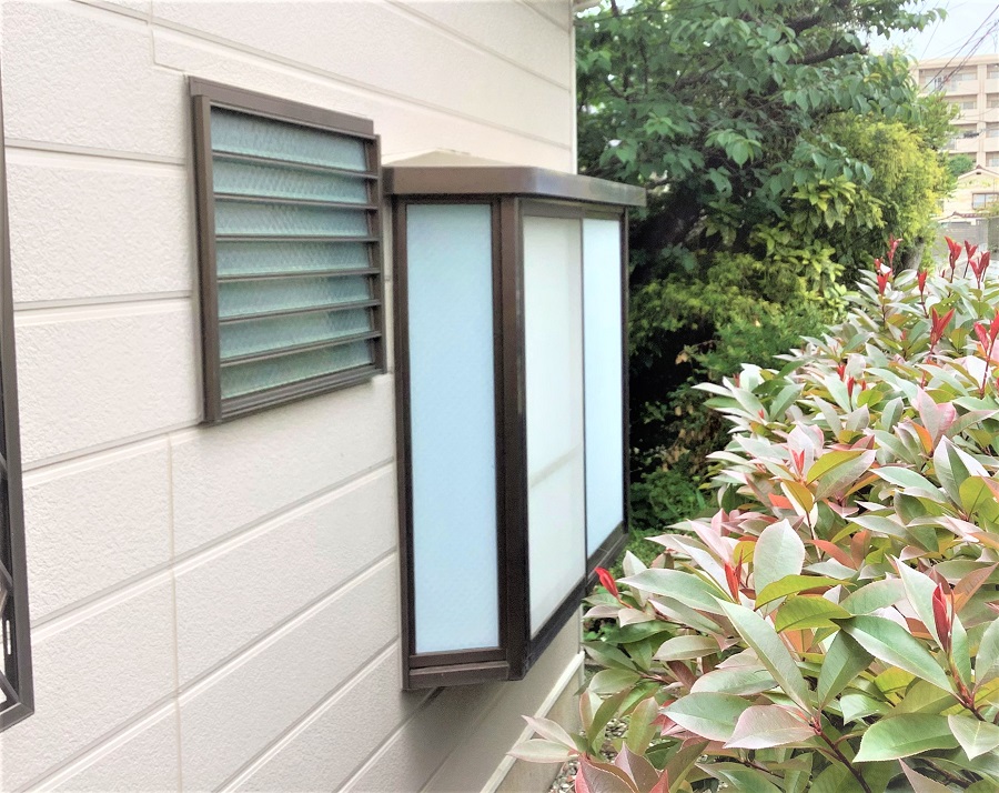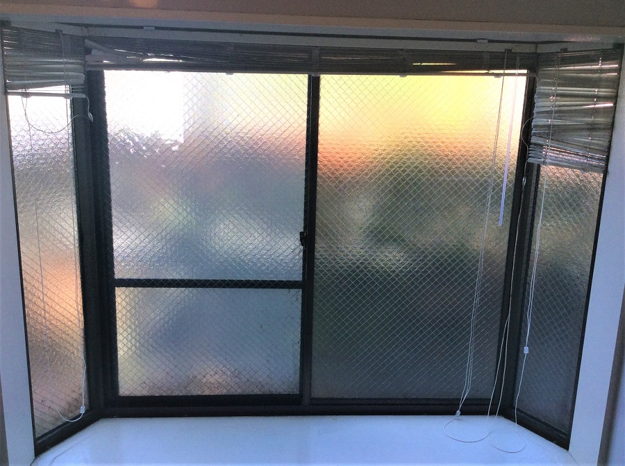 ‍浴室の出窓に目隠しフィルムを貼り付け。