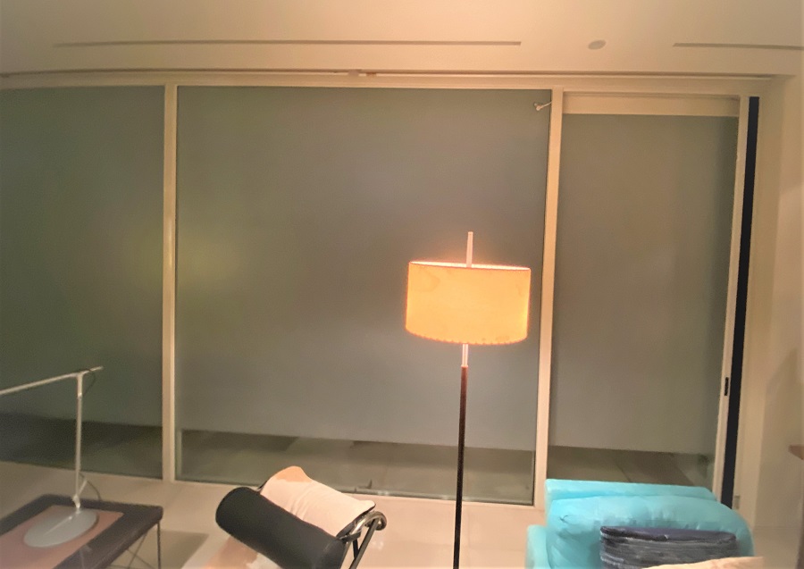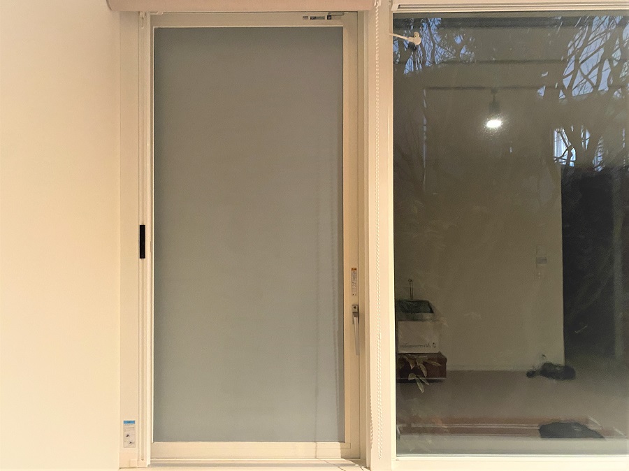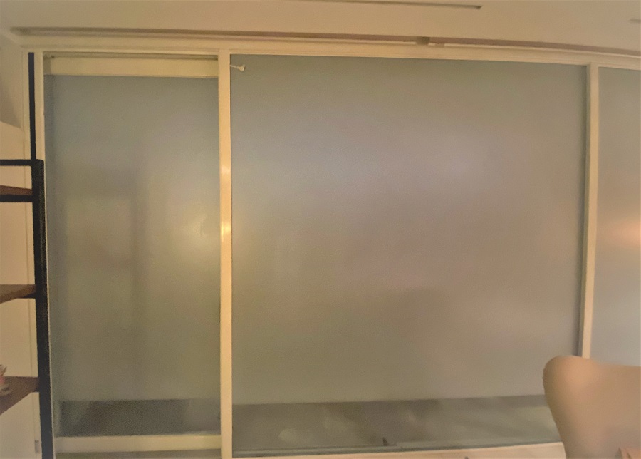 ‍戸建て住宅の居室窓にスリガラスタイプの目隠しフィルムを貼付け。