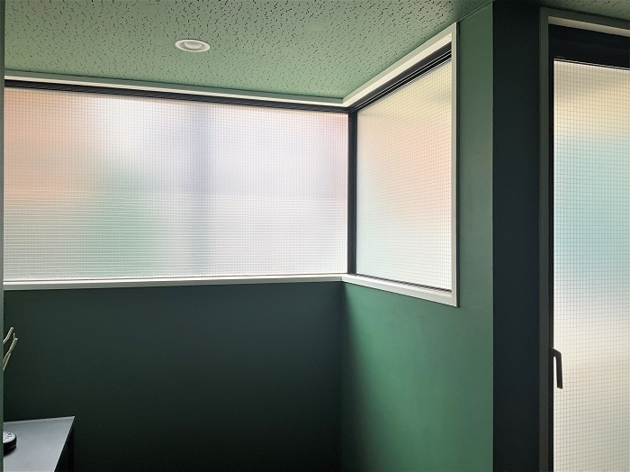 ‍住居室内の窓にスリガラスタイプの目隠しフィルムを貼付け。今回使用したのはScopeオリジナルの『MS84』です。