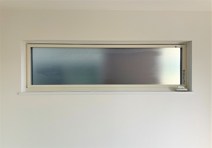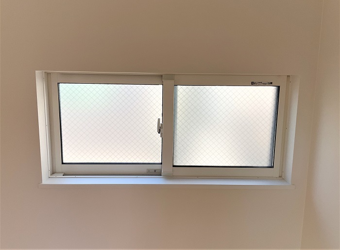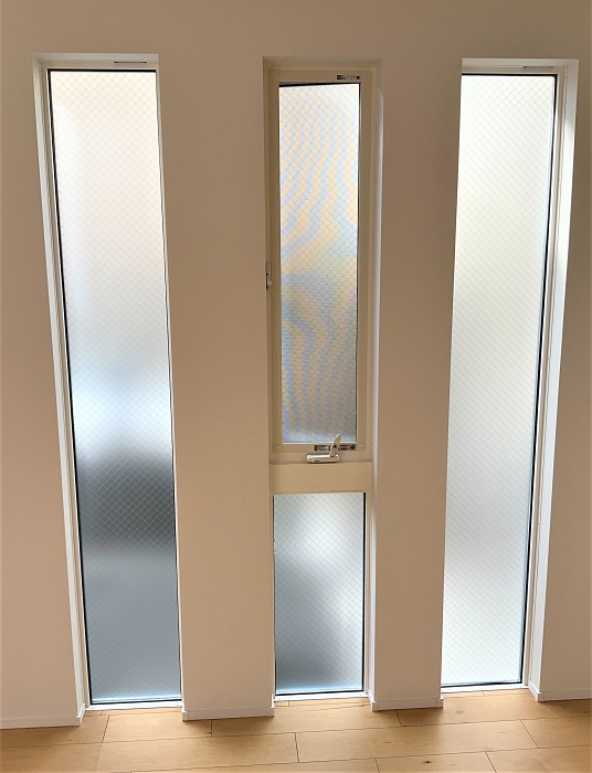 ‍住居の窓にスリガラスタイプの目隠しフィルムを貼付け。