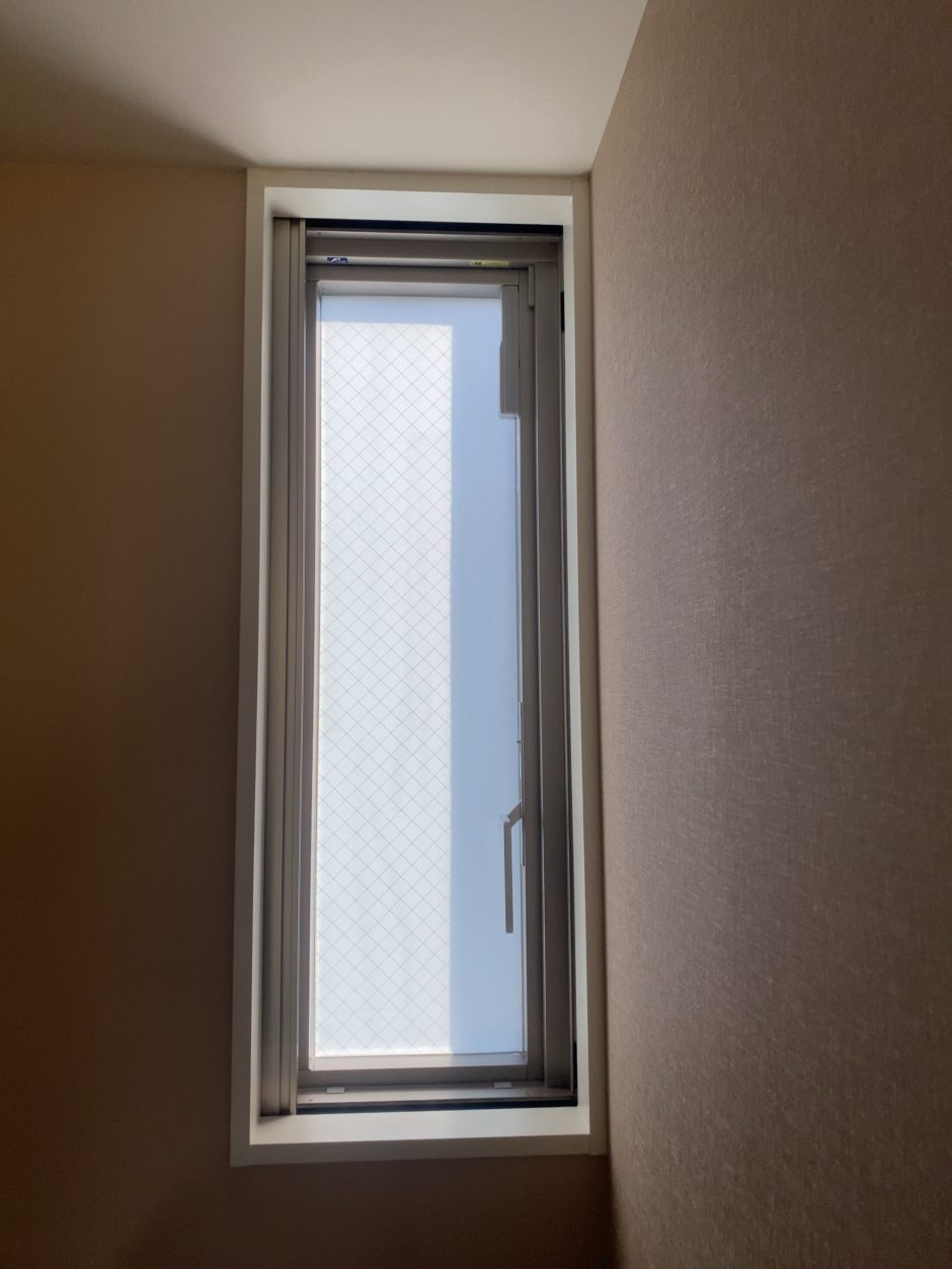 ‍ご住居の窓にスリガラスタイプの目隠しフィルム貼付け。
