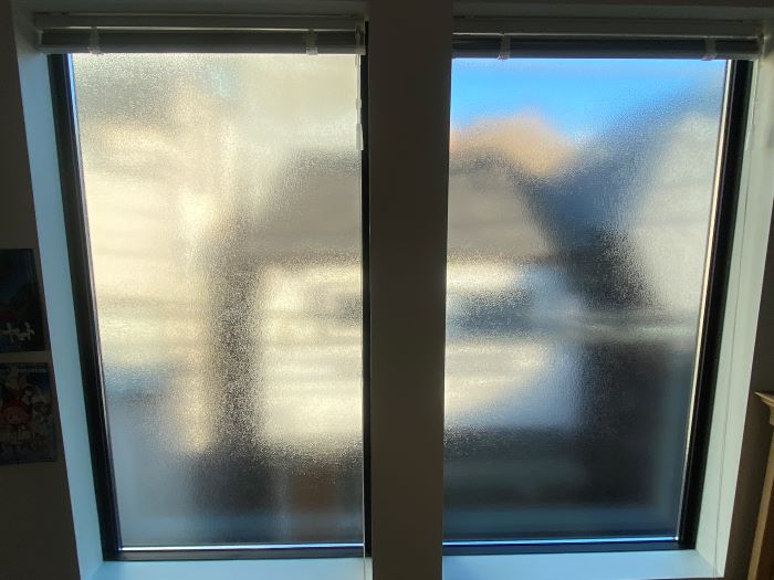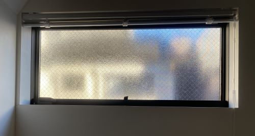 ‍居室窓にスリガラスタイプの目隠しフィルムを貼付け施工。