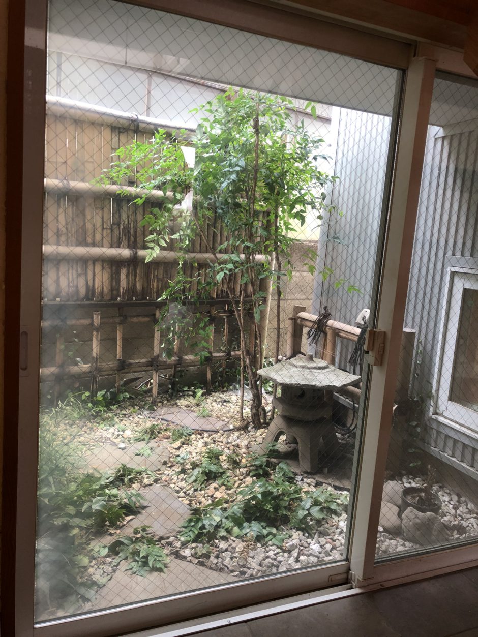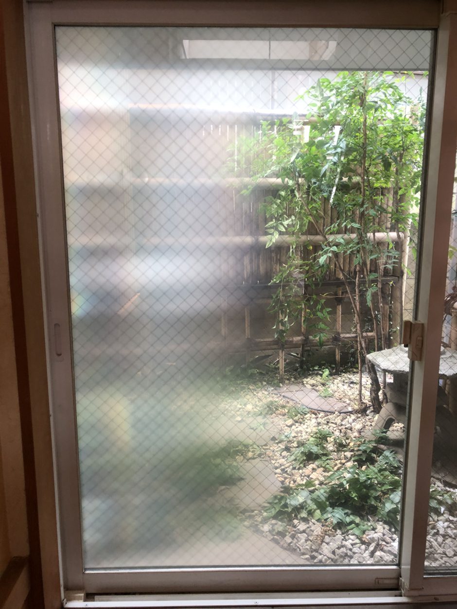 ‍左側から窓に近づくと、フィルムが貼られていなかった時と同じように、外の趣のある木々が見えます。