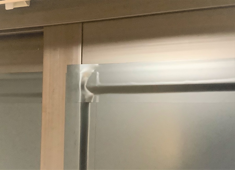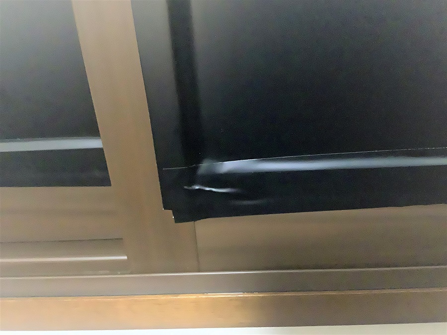 ‍居室の窓にカッティングシートを貼り付け。